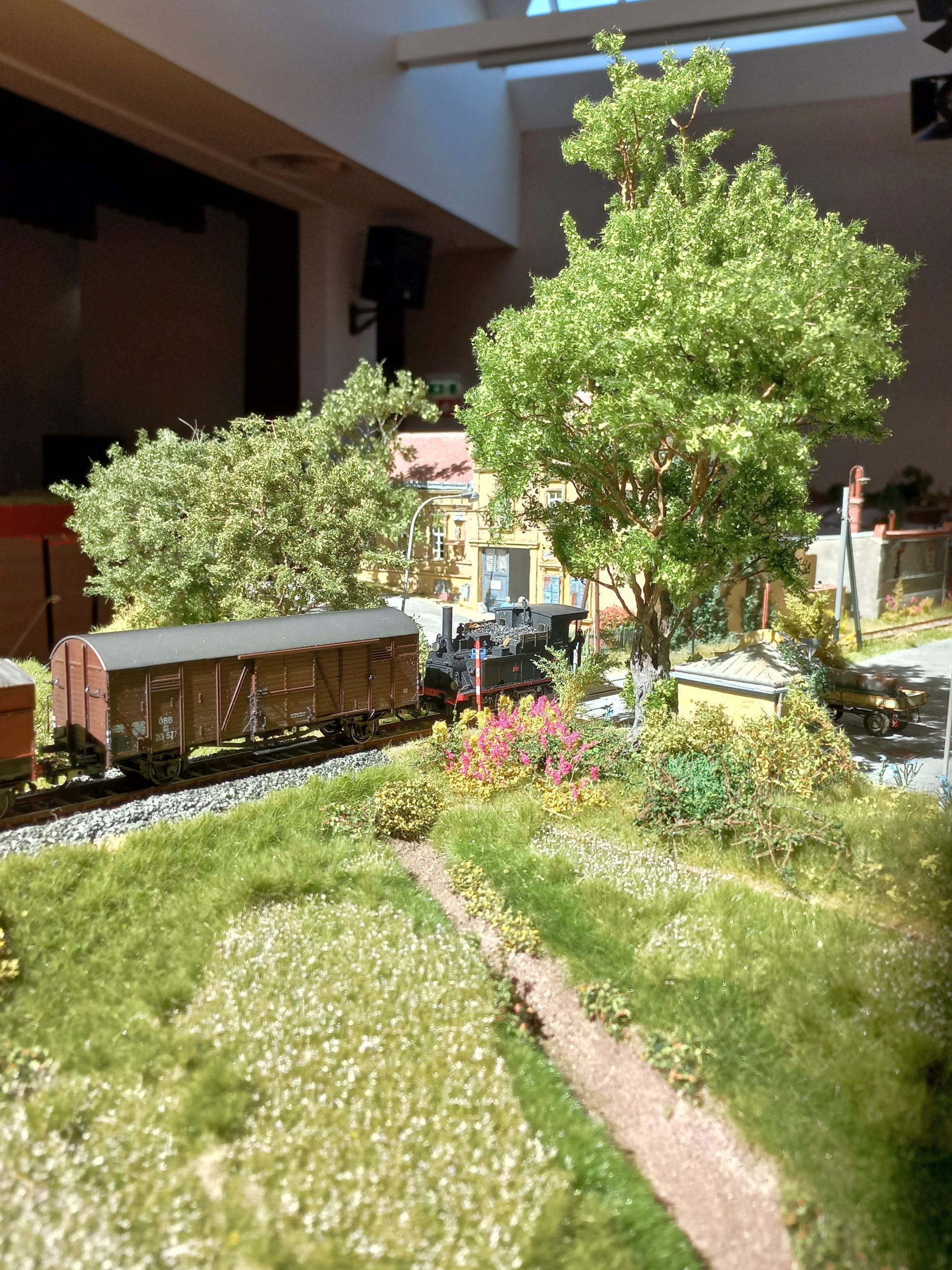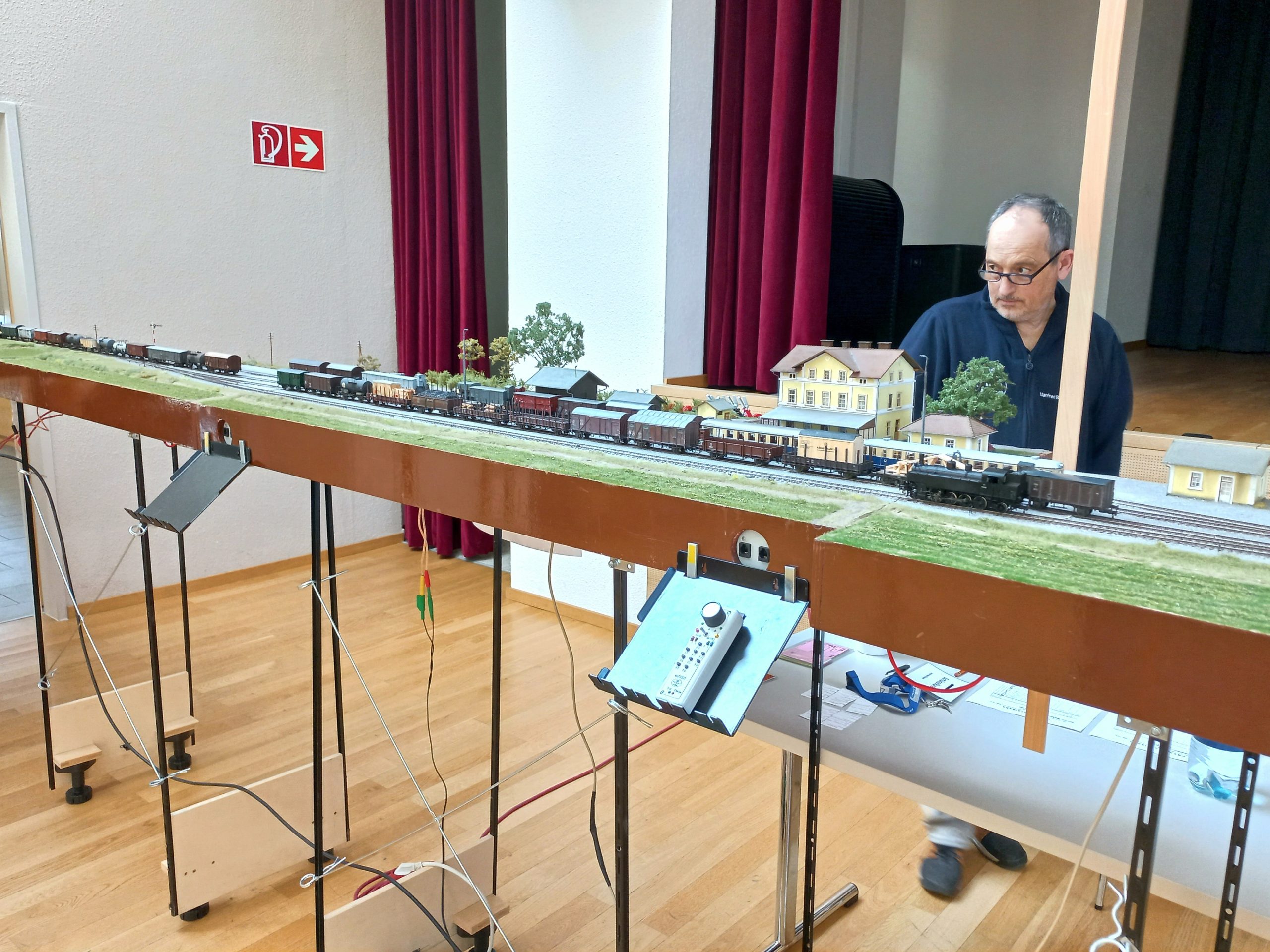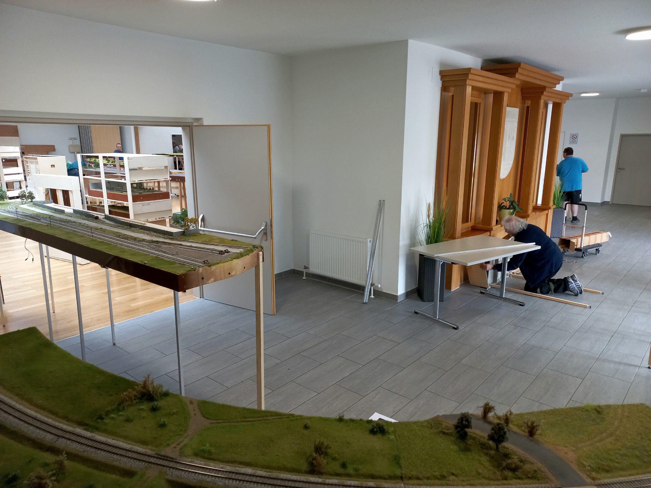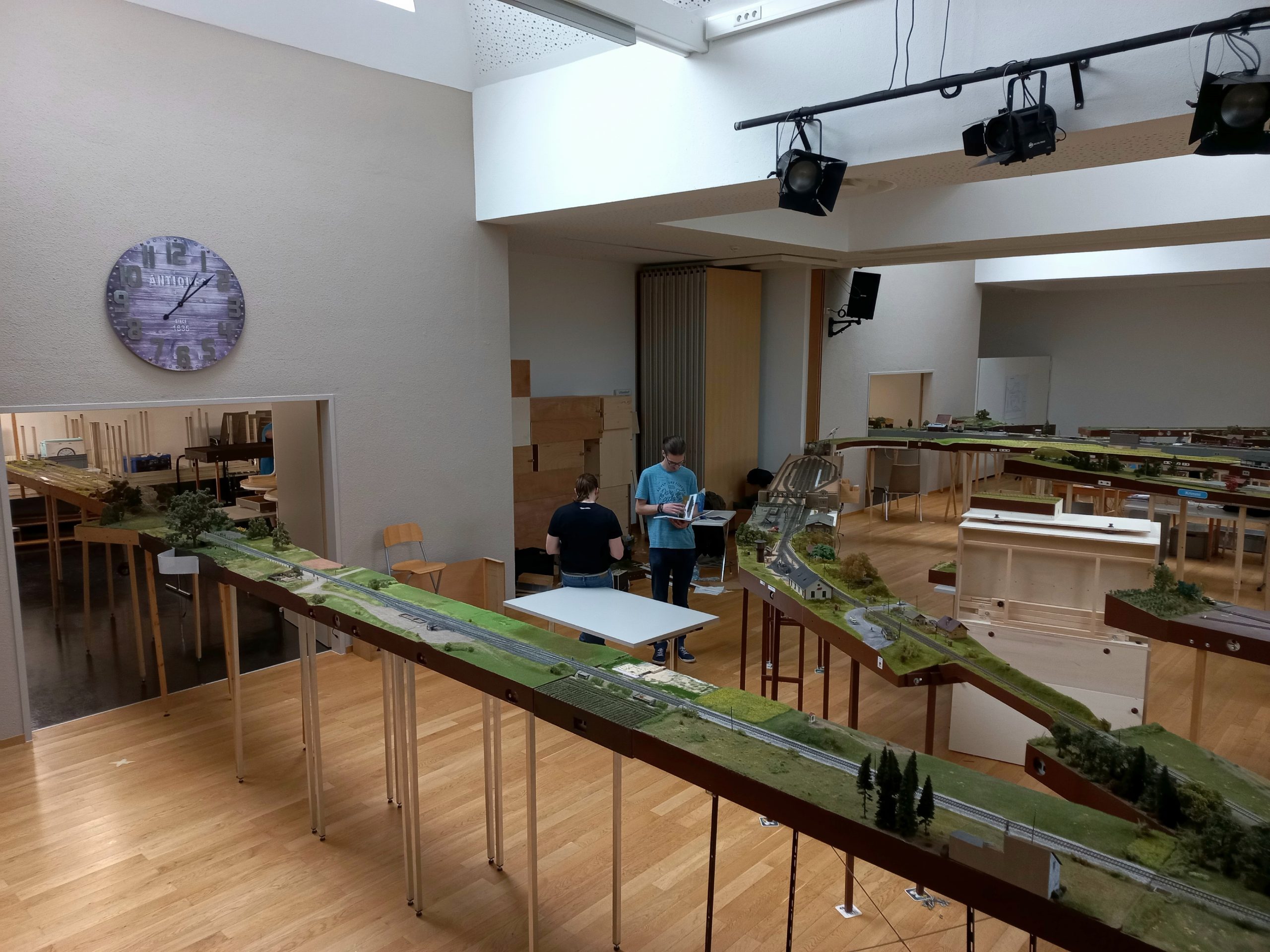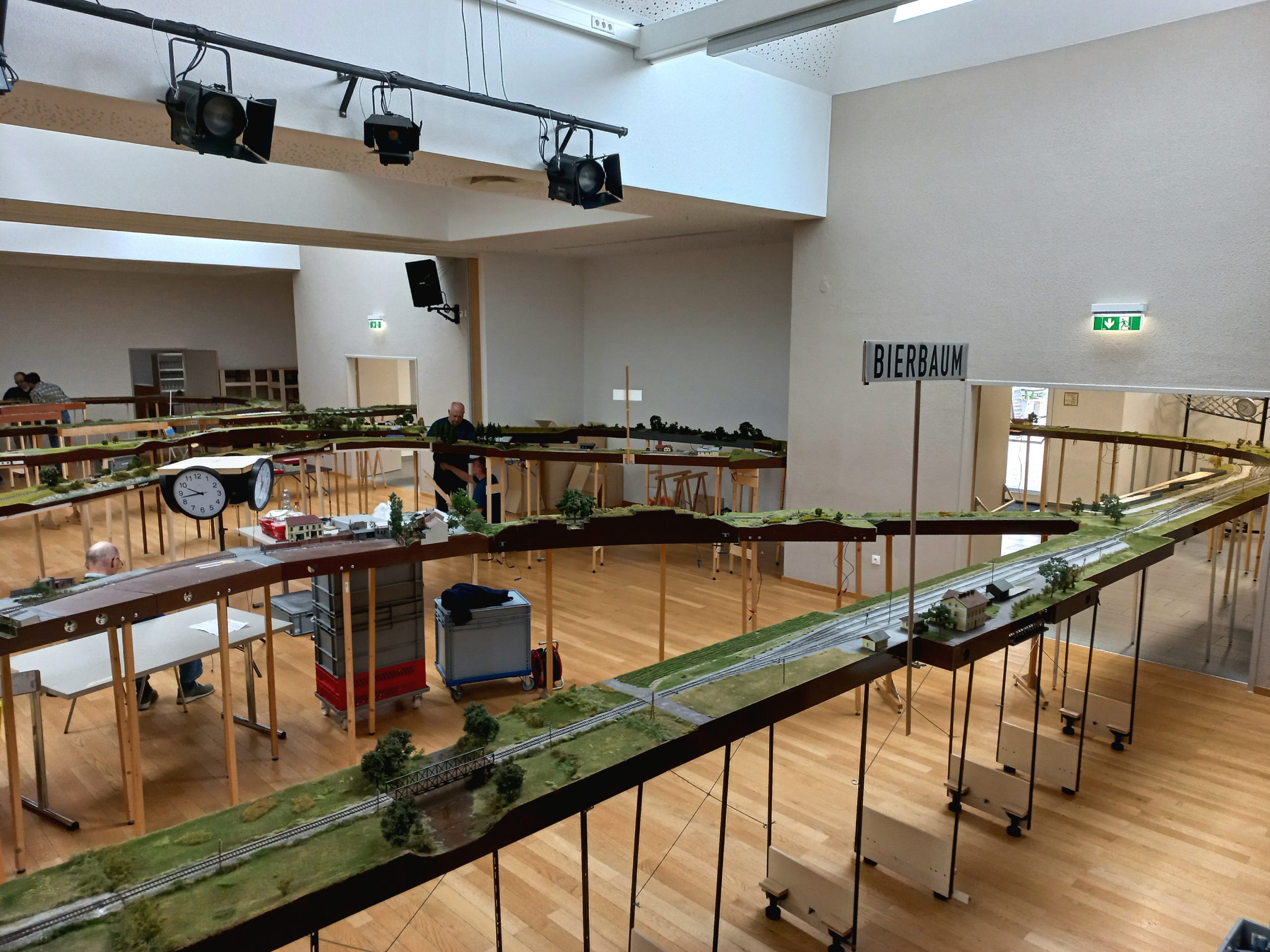 Wie bereits vorher sieben Male waren wir wieder „Gäste“ in der Ortszentrum-Halle (in zwei Jahren mussten wir in die Turnhalle der Volksschule ausweichen). Das Schöne war, dass es nicht nur das zehnte Treffen war, sondern wir diesmal auch Verstärkung durch die Schmalspurbahner bekommen haben, die den zur Verfügung stehenden Raum bestens ausgefüllt hatten. Eine – wie ich finde – gelungene Kombination. So wurde bei der Normalspur ein Endbahnhof im Arrangement ersetzt durch eine Übergabe zur Schmalspur, und die normalspurigen Güterwagen konnten aus Rollwagen den weiteren Weg zu ihren Zielen zurücklegen (und es gab klarer weise auch Schmalspurzüge ohne Rollwagen).